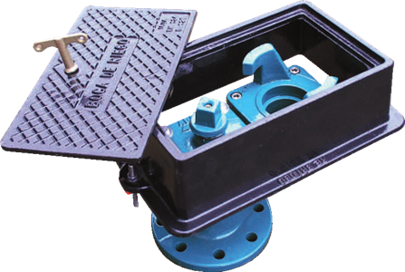 Cierre: fundición + elastómero NBR Registro y Tapa: fundición nodular